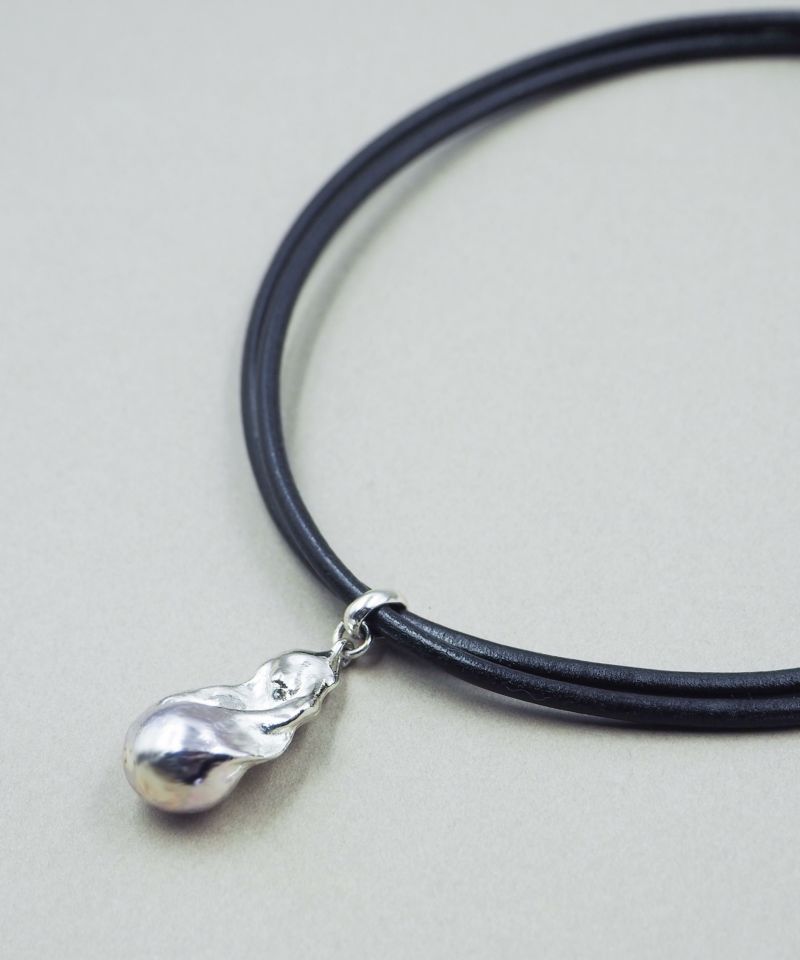 オイスターパールから形を作ったオリジナルパーツがついたレザーチョーカーです。