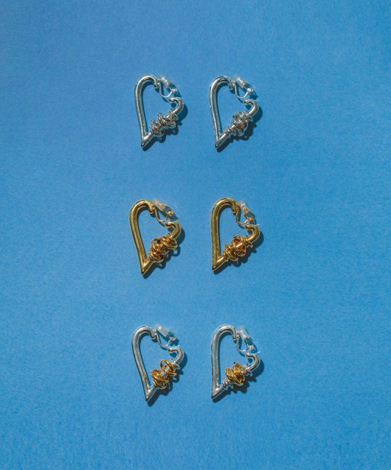ハートモチーフに“COIL AROUND Series”のデザインを落とし込みました。 大ぶりなシルエットで印象的な顔回りを演出します。 ピアスタイプはこちら。