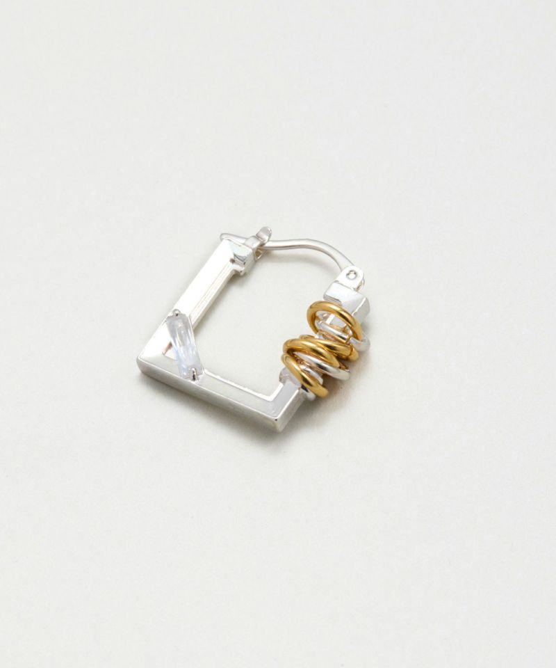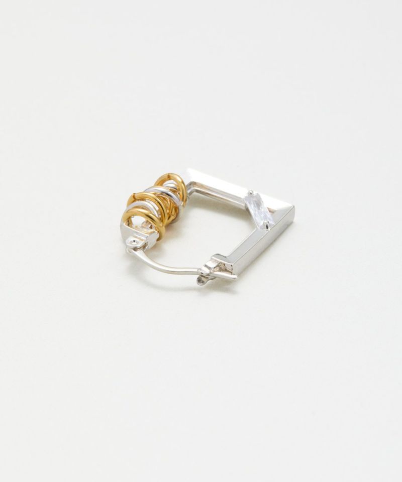 シャープなフレームデザインで、洗練された印象を与えるピアス。