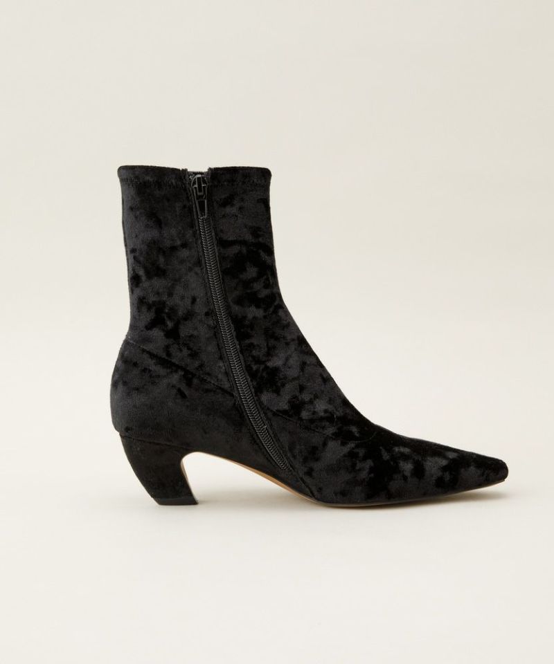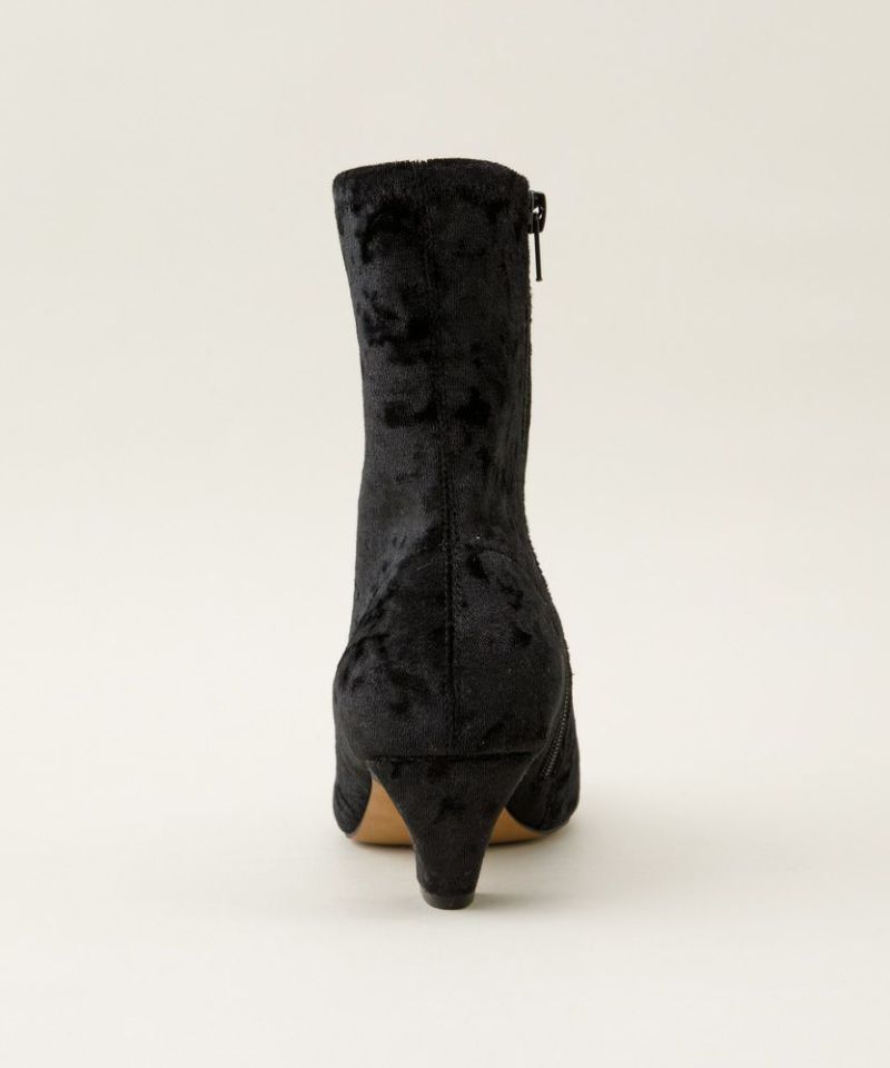 上質さを印象付ける凹凸感のあるクラッシュベロア素材を使用。ストレッチ性のある生地で、足にフィットする快適な履き心地を実現しました。