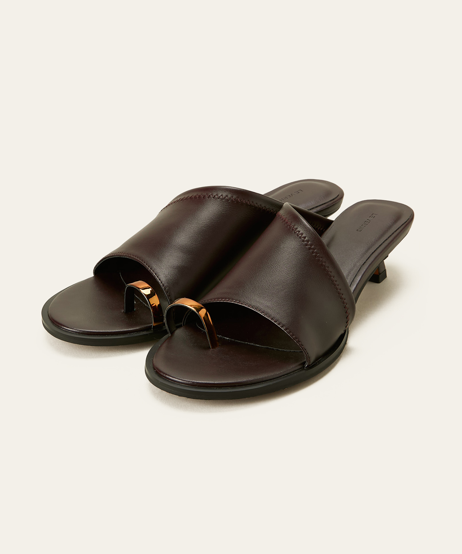 【2026 Spring新作】 先シーズン大人気だったサンダルのミュールバージョンが登場! トゥリングのディテールが目を引くミュール。 やや深めに甲を覆うシルエットが新鮮なスタイルを叶え、ちらりとのぞくトゥリングのディテールとシャープなスクエアトゥの木型が、モダンで洗練された印象を演出します。 程よい光沢感がありつつ、レザー調の質感にこだわって厳選したフェイクレザーを使用し、ライニングと中敷きにラッカー豚革を使用することで足馴染みの良さも叶えました。 ・すっと履きやすいミュール ・モダンで洗練された印象を演出するデザイン ・華奢見えするトゥリングのデザインがポイント ・モードからきれいめなスタイルまで幅広く活躍 ・しっかりホールドする深めの履き口 ・安定感のある低めで幅太のヒール