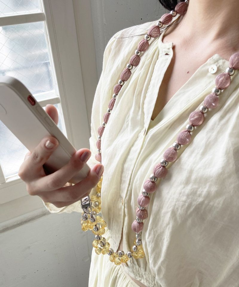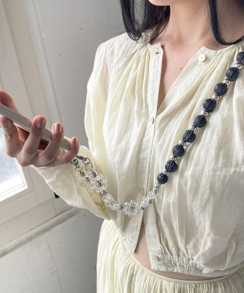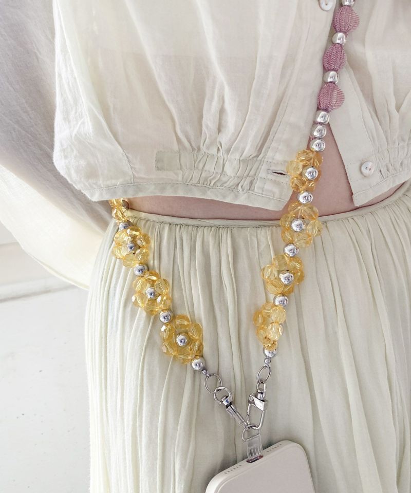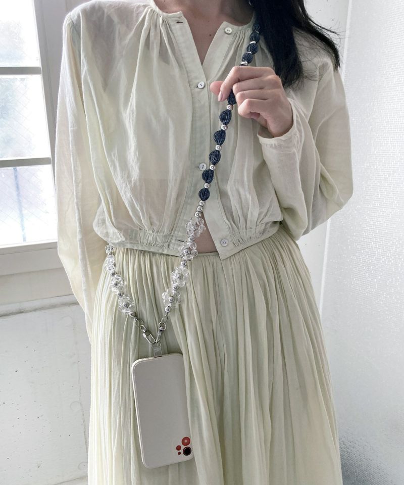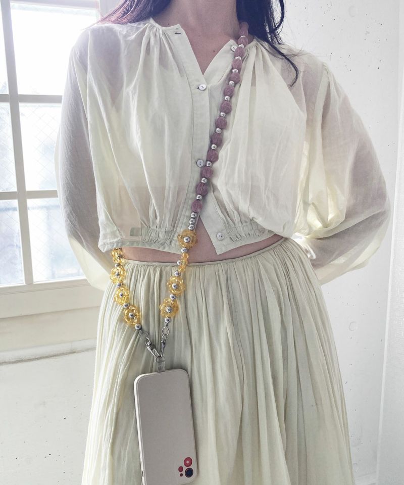 ビーズをラメ生地で包んだ、キャンディをラッピングしたようなデザインがポイントのモバイルショルダーです。 合わせやすい色展開ですが、ラメ生地の素材とビーズのキラっと感が夏のコーディネートをよりテンション高く仕上げてくれます。