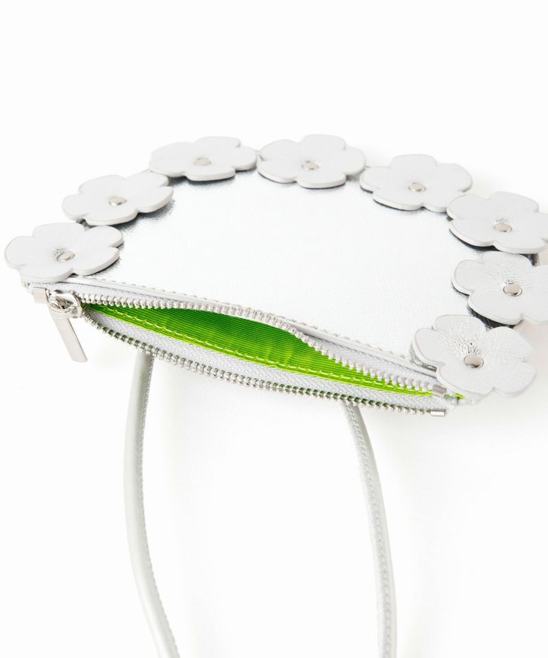 立体的なお花のモチーフが可愛らしいポーチと、シンプルな丸紐に仕上げたショルダー。 甘くなりすぎない組み合わせで、幅広いテイストに合わせることができます。 ポーチとショルダーは取り外し可能で、その日のコーディネートや用途に合わせて使い分けるのもおすすめです。 カラビナがついているため、お気に入りのストラップを加えるなどアレンジも楽しんでいただけます。