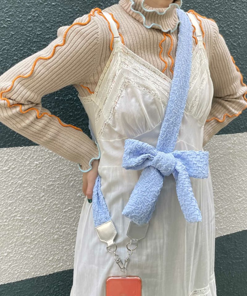 リボンを前に持ってきたり、後ろに持ってきたり、どこから見ても楽しめるデザイン。