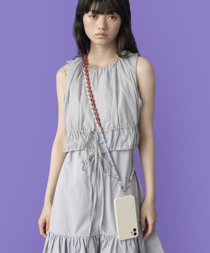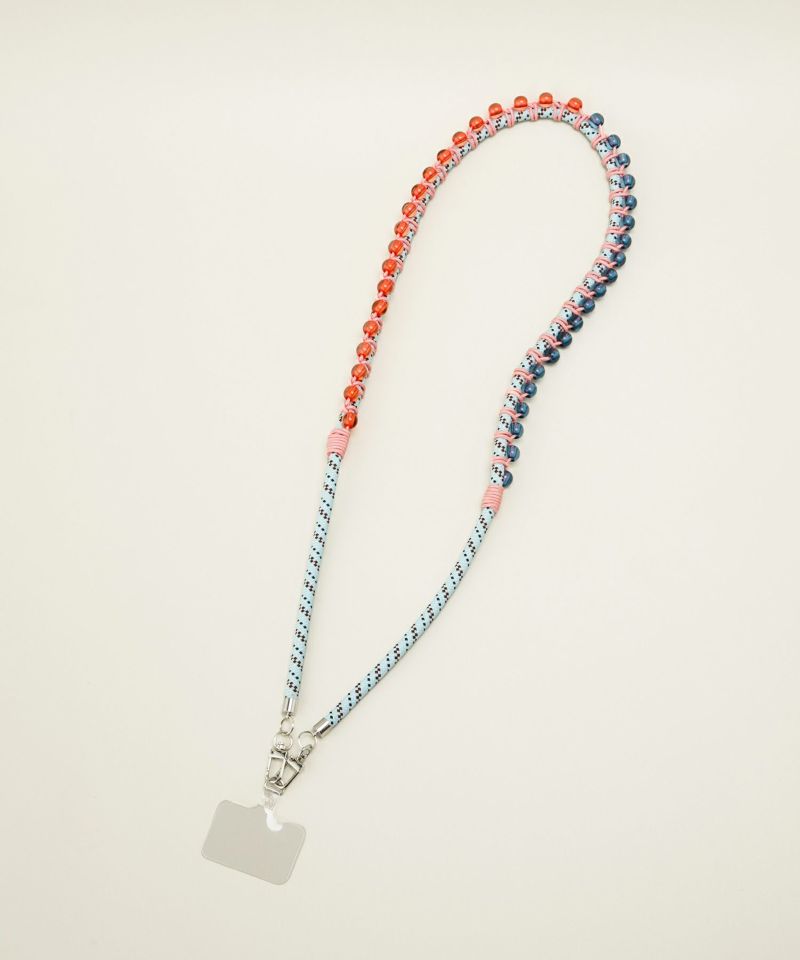 太いコードにビーズを編み付けた素材の組み合わせが楽しいスマホショルダー。 涼し気な透け感のある大きなビーズは夏のお出かけのコーディネートのアクセントにおすすめです。 スマホ本体とカバーの間に差し込んで使えるパーツ付きのため、お手持ちのカバーにすぐご使用いただけます。