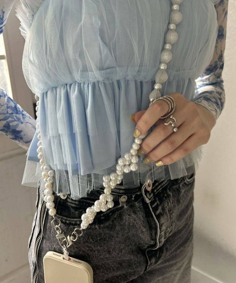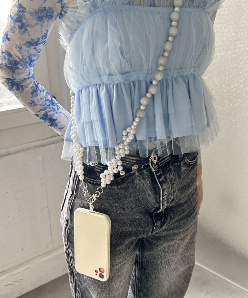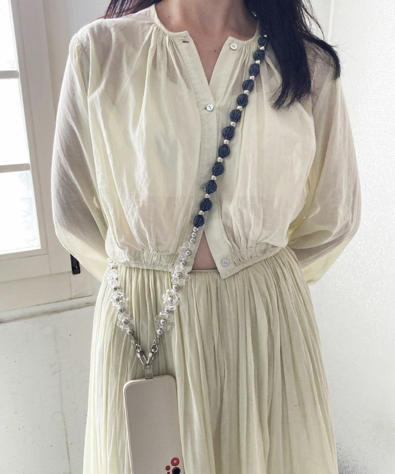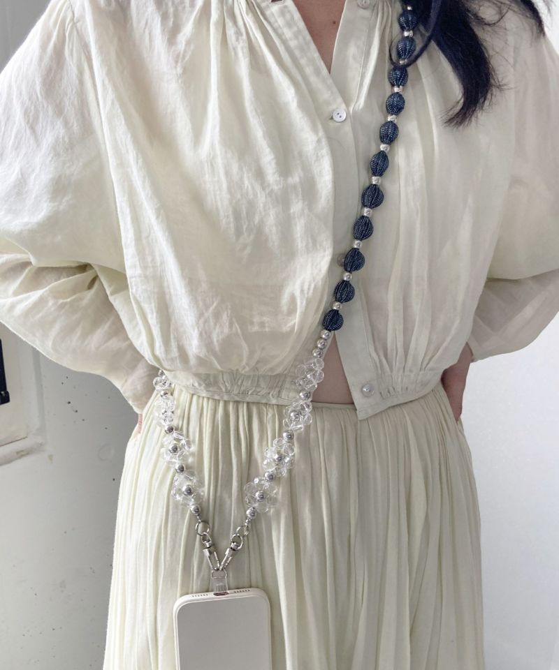 ビーズをラメ生地で包んだ、キャンディをラッピングしたようなデザインがポイントのモバイルショルダーです。 合わせやすい色展開ですが、ラメ生地の素材とビーズのキラっと感が夏のコーディネートをよりテンション高く仕上げてくれます。