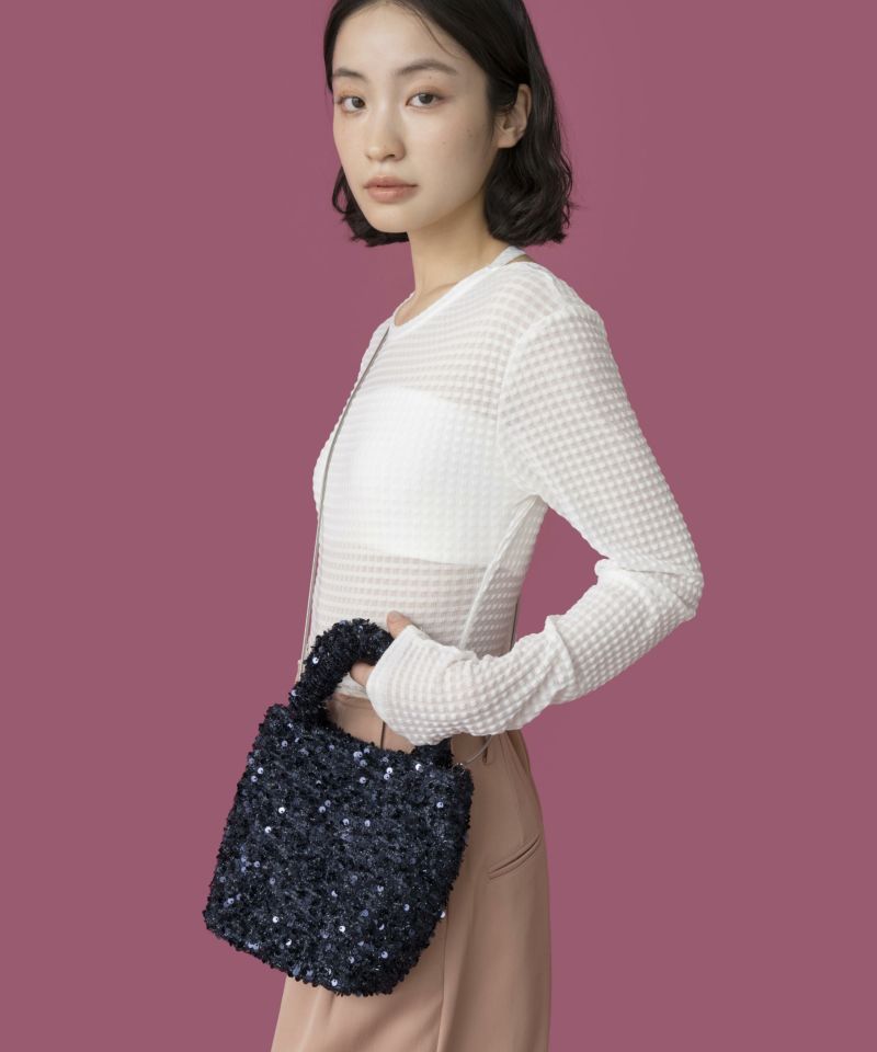 華やかなスパンコール素材が魅力のショルダーバッグ。 取り外し可能なチェーン付きで、同系色の合皮を部分使いした高級感あるデザイン。 ミニ財布やスマホなどが入るちょうどいいサイズ感で、普段使いからお呼ばれシーンまで活躍します。