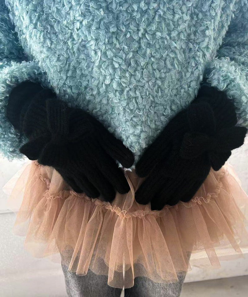アウターを着た際にちょうど袖口からリボンが見えるようにデザインしているので、シンプルな防寒スタイルを一気に華やかにしてくれます。