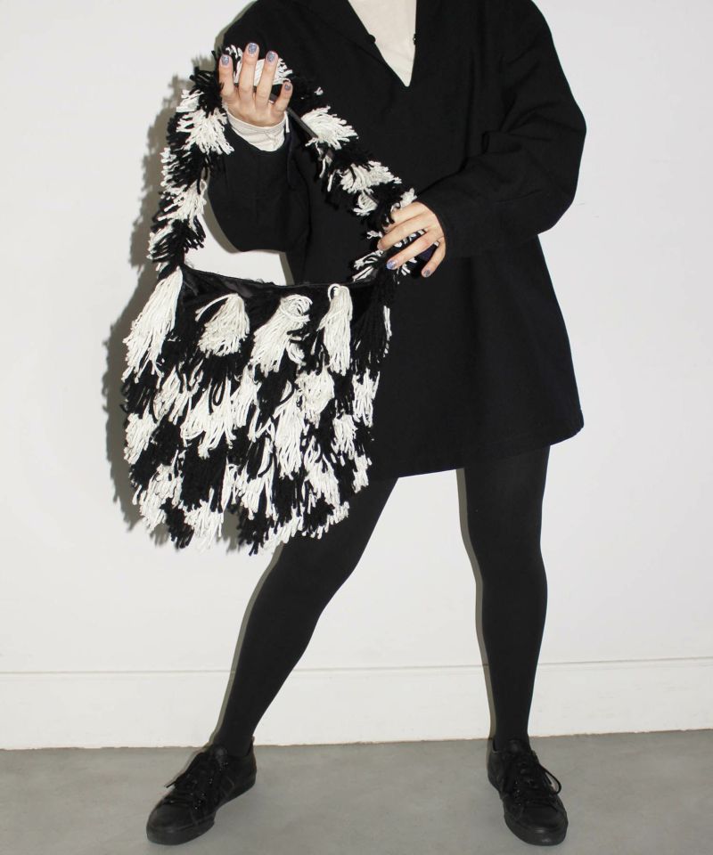 アクリル毛糸を選んでフリンジテープを作り、それを全面に施したBAGを作ってもらいました。