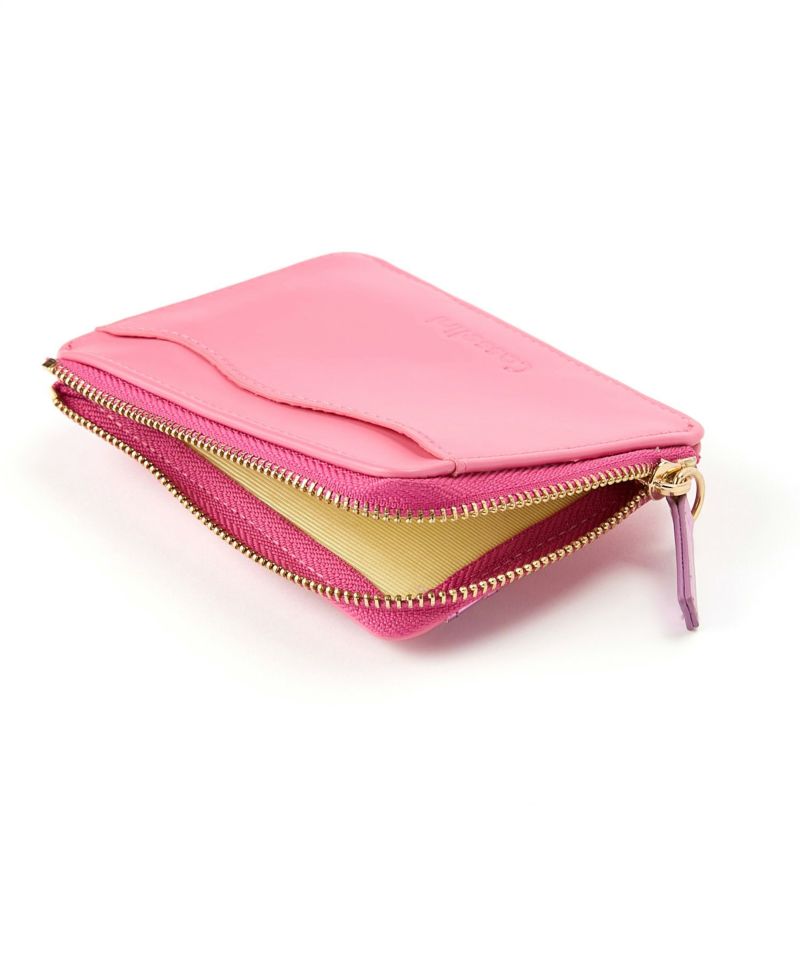 毎シーズン人気の多機能カードケースに新しいモチーフが登場! キャセリーニらしい⾧毛の猫・モノトーンのダルメシアン・ポップないちご・夏にぴったりなビタミンカラーバナナの4 色展開です。表裏どちらにもカードを入れることができ、さらに、ファスナーポケットにコインやお札も入れておけます。 内側のポケットはクリアで中が見えるので、自分だけのお気に入りのカードや推しステッカーを入れても◎