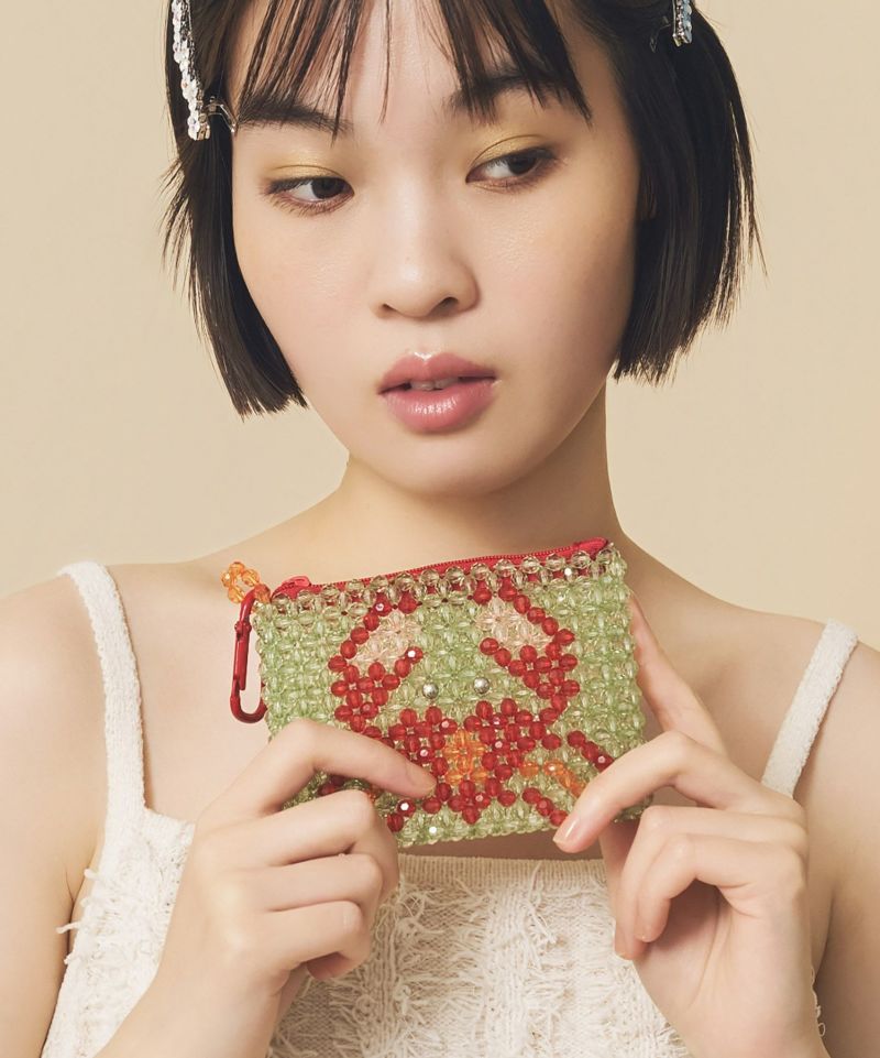 夏らしいクリアビーズを全面に使ったポーチです。