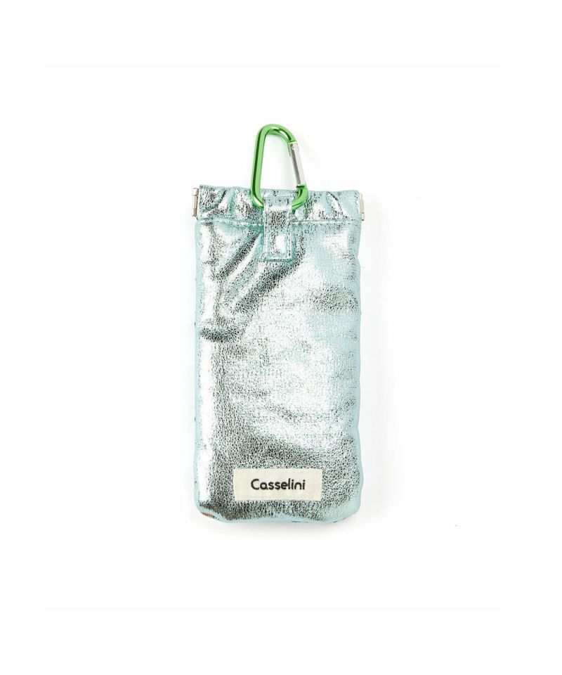 Casseliniらしい刺繍を施したサングラスケースは、カラビナでバッグに取り付けて、チャームのように使用しても◎