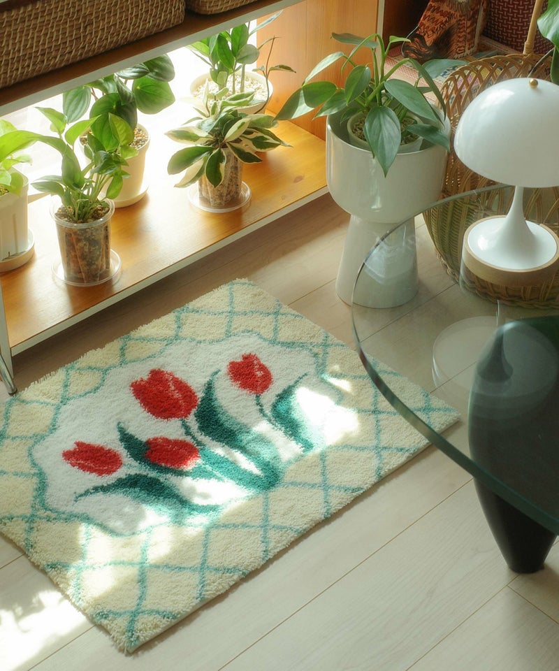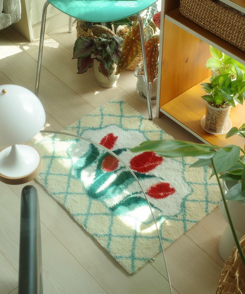 CasseliniHOME定番のチューリップ柄&ポップな配色がポイントのアクセントラグ。