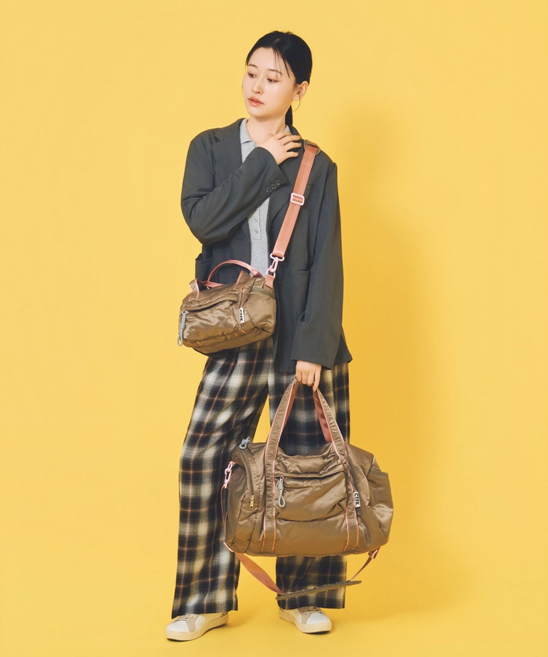 コロンと丸みのあるシルエットがポイントとなる、かわいらしいダッフルバッグ型。