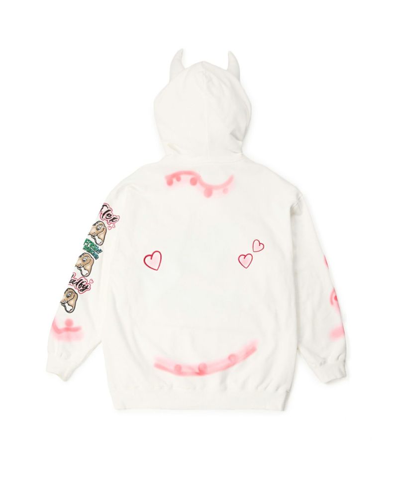 「そこまでやる!?」ってくらい刺繍とスプレーで盛り盛りに仕上げた、GALFY × HEY!MrsROSE コラボフーディー。