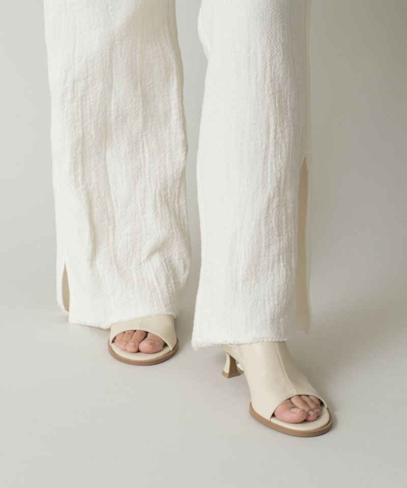 ヒールが細く、見え感がキレイなので、あえて太いパンツに合わせるのがおすすめです!