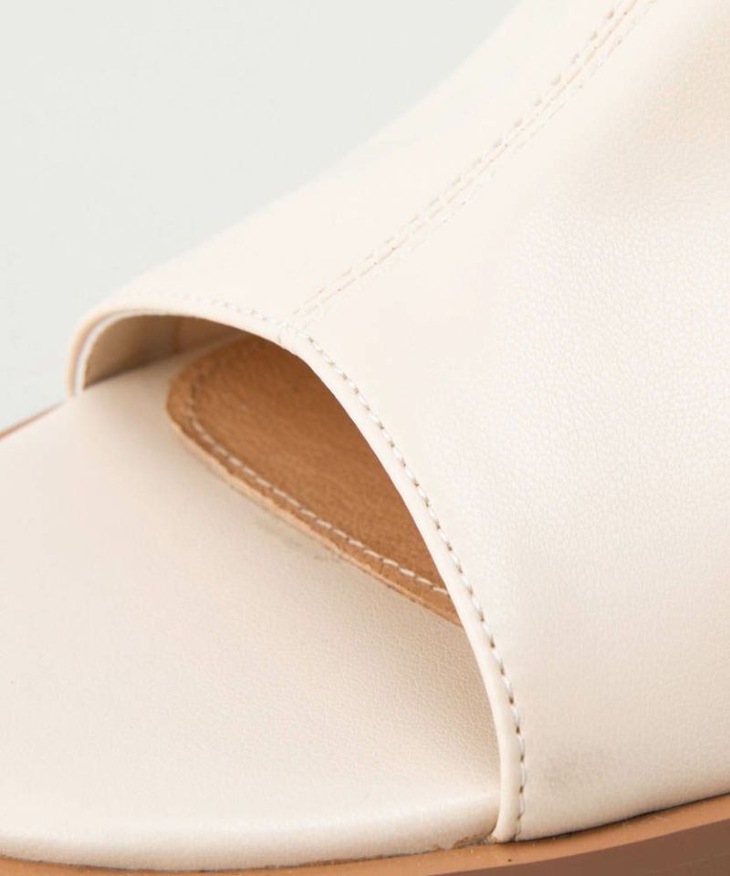 ストレッチミュールの履き心地の良さはそのままに、今季はラウンドトゥと特徴的なヒールに大きくアレンジしています。