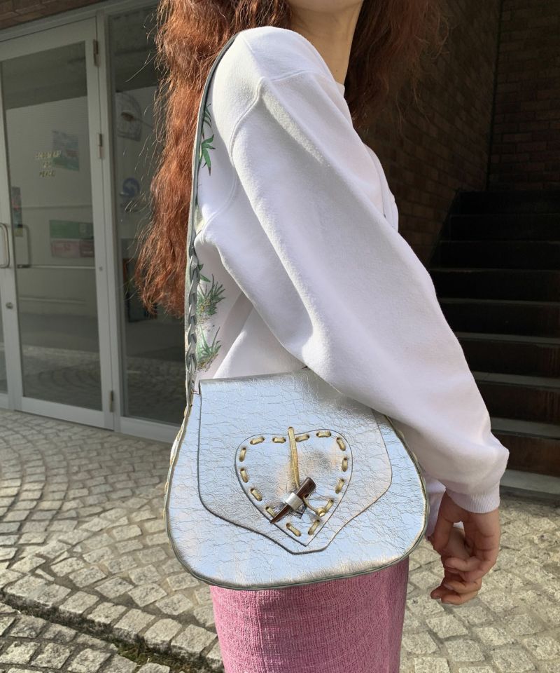 まるで紙のように軽いフェイクレザーを使用したバッグに、アンティークな雰囲気の太いステッチが映える一品。大きすぎず、小さすぎずのサイズ感で「ちょっとそこまで」のワンマイルバッグにおすすめです。