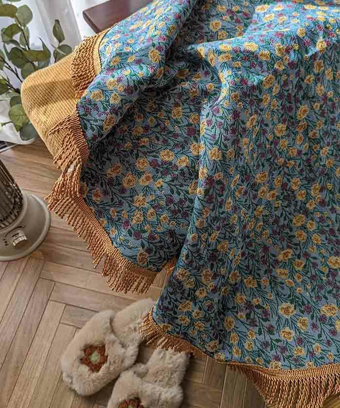 高級感のあるジャガードですが、実はやや薄めの軽くて柔らかい素材を使用しており、ラグとしてだけでなく、テーブルクロスやハウスカバーとしてもお使いいただけるアイテムです。