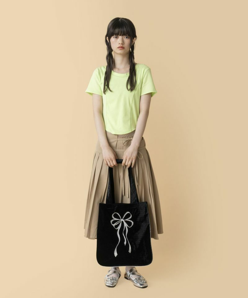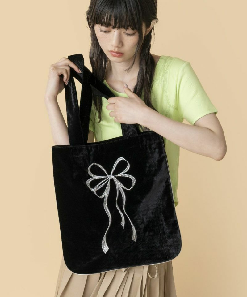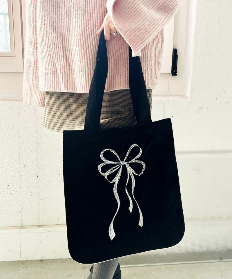 フェミニンな印象を与える、上品なリボン刺繍が施されたトートバッグ。 繊細なリボンモチーフの刺繍がアクセントとなり、シンプルながらも華やかさを演出します。 日常使いはもちろん、ちょっとしたお出かけやサブバッグとしてもぴったり。 内側に小物ポケットがついており、実用性も抜群です。