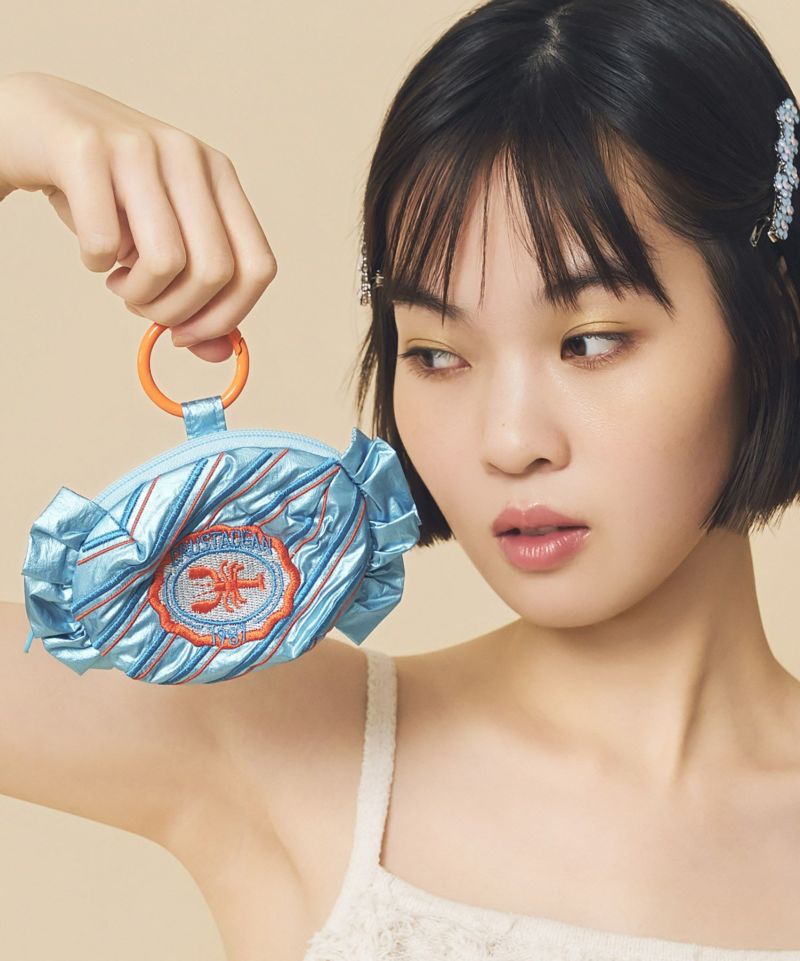 キャンディ型のコロンとしたフォルムが愛らしいチャームポーチ。