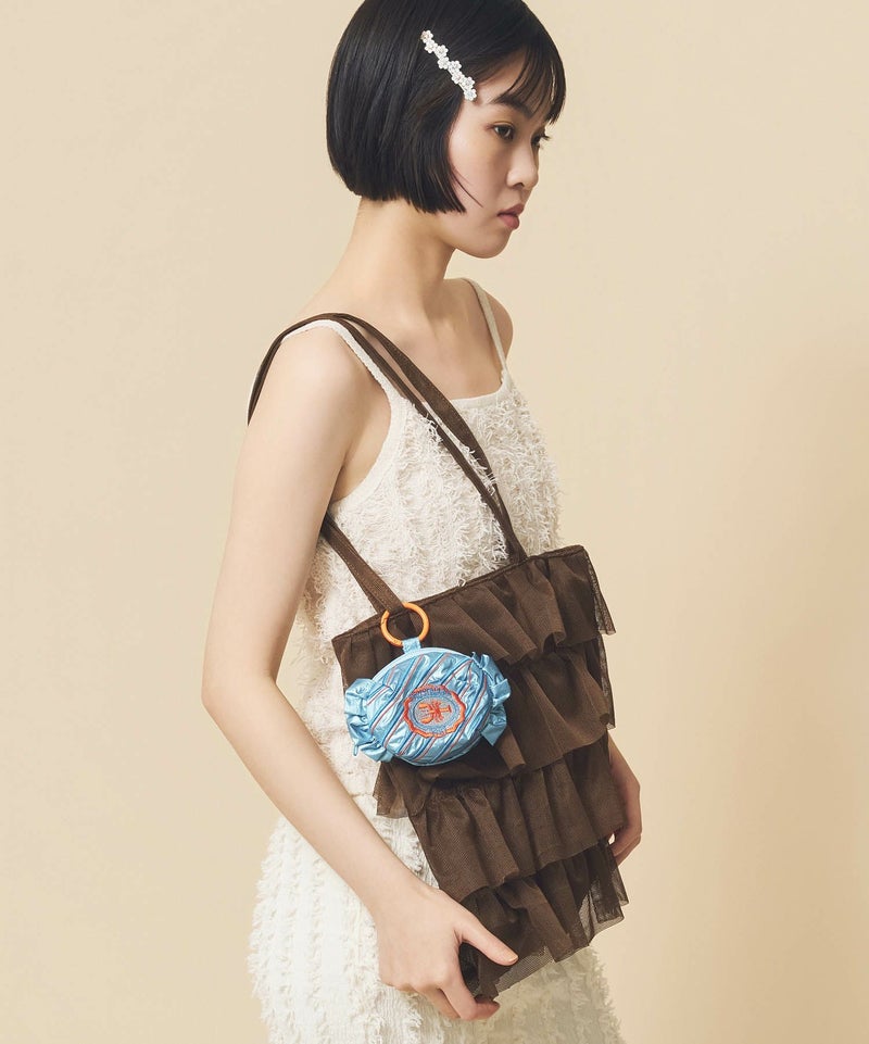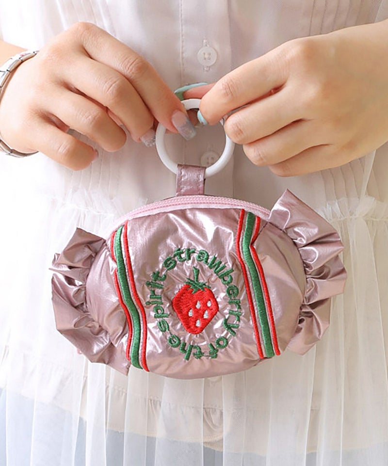 キャンディ型のコロンとしたフォルムが愛らしいチャームポーチ。