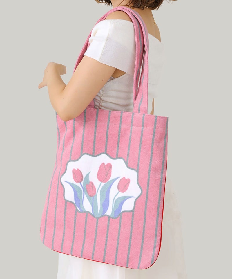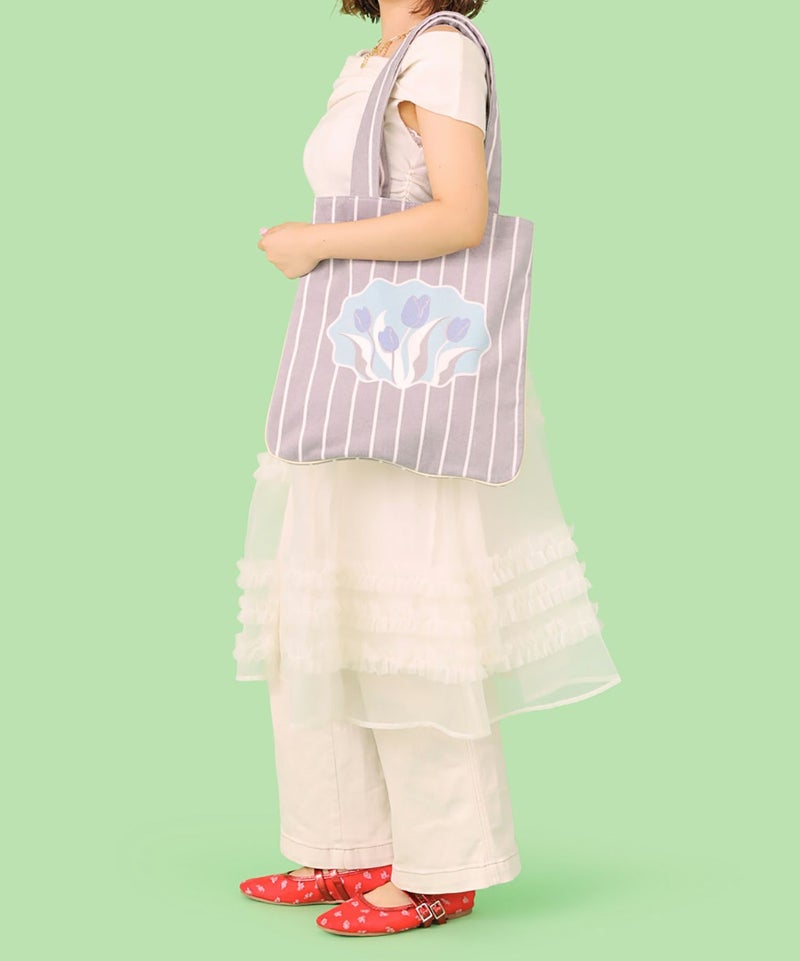 Casselini HOMEで人気のフラワールームラグをトートバッグに。