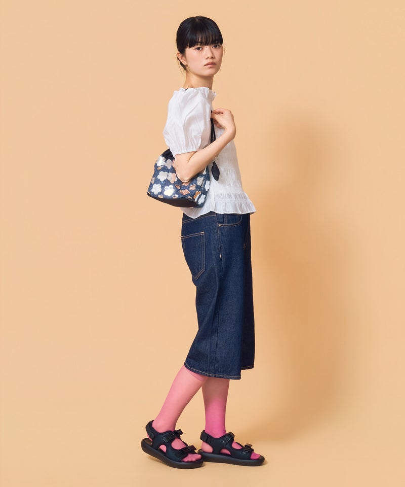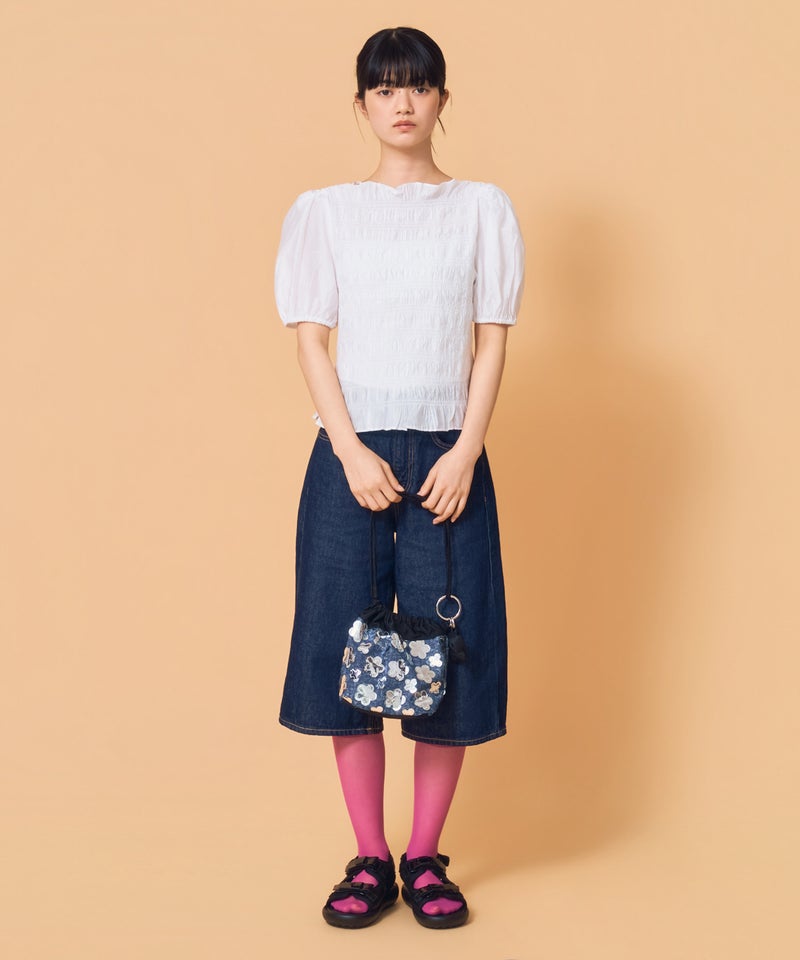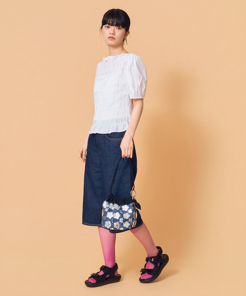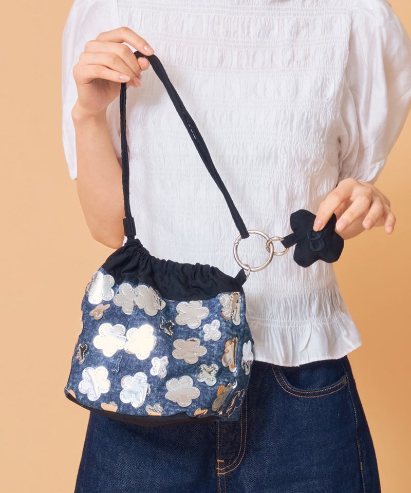 フラワーモチーフが目を惹く、デニム素材のパース。
