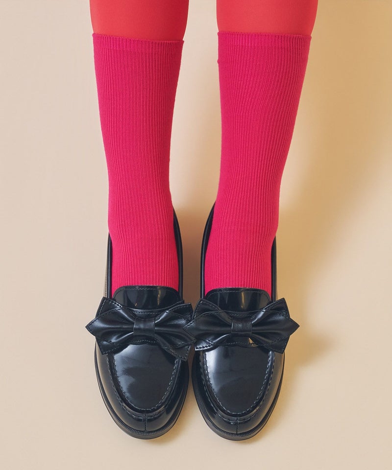 クラシックなローファーに、立体感のあるリボンをあしらったフラットシューズ。