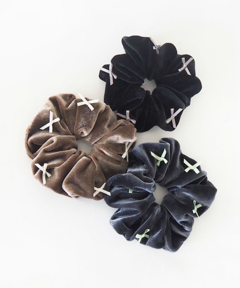 ミニリボンが可愛いシュシュ。 程よいボリューム感がヘアアレンジのポイントに。 ベロア素材なので、スタイリングが上品にまとまります。