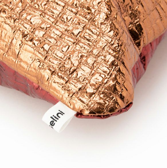 箔のコーティングをしている生地を使用したクッションカバーです。