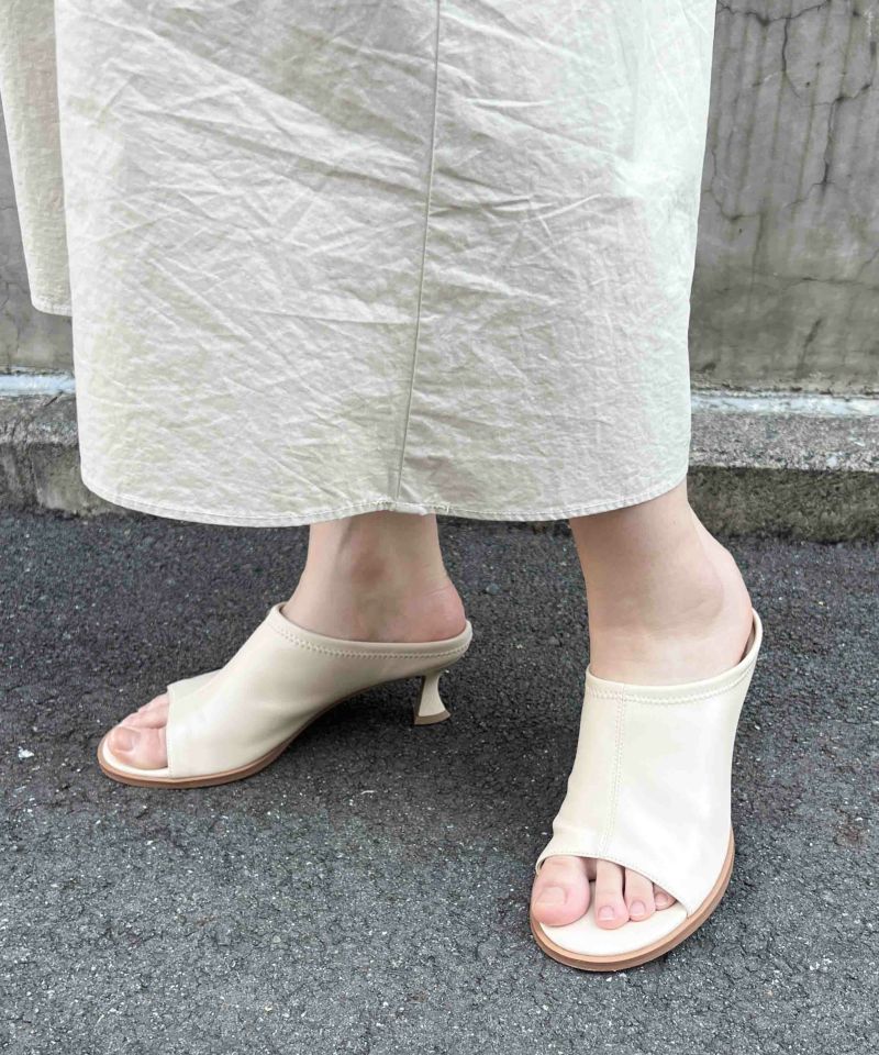 ストレッチミュールの履き心地の良さはそのままに、今季はラウンドトゥと特徴的なヒールに大きくアレンジしています。