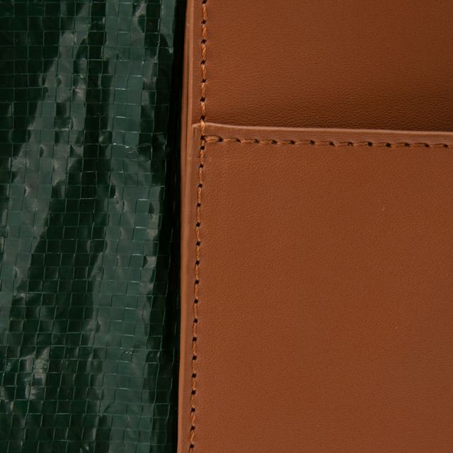 フェイクレザーとナイロン素材のコンビが印象的なトートバッグ。 荷物をたっぷり収納できる大きさと、マチのあるデザインで、ちょっとしたお出かけにおすすめです。ポリエステル素材を使用し撥水性と丈夫さをプラス。 コーディネートのアクセント使いに是非。