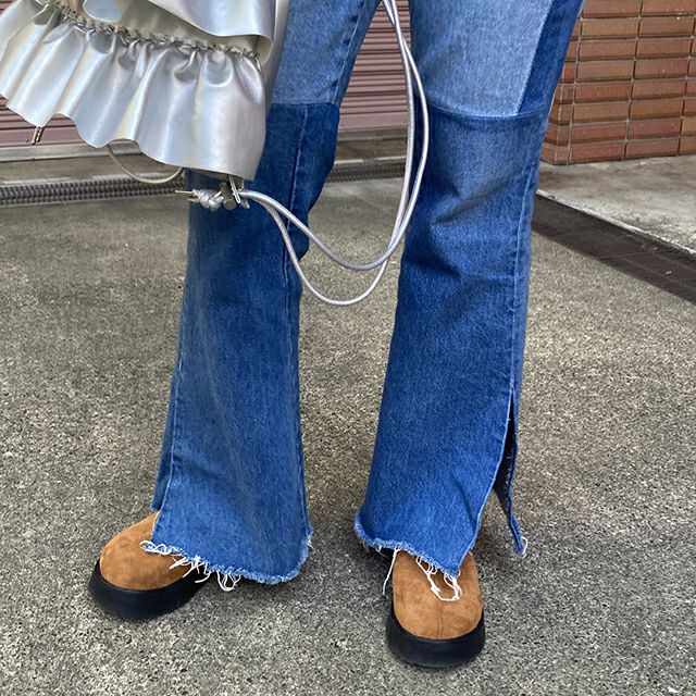 ワイドパンツやフレアパンツ、ミニスカートやマーメイドスカートなどトレンドのボトムに合う万能なシューズです。
