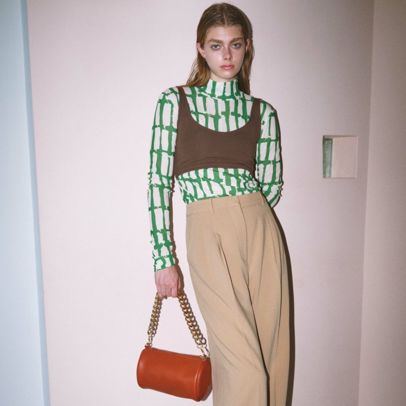 コロンとしたフォルムが可愛い、トレンド感満載の筒形のバッグ。