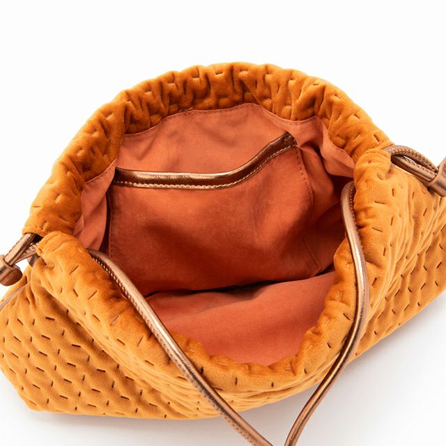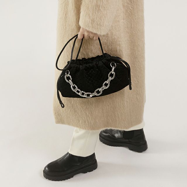 トレンドの金属チェーンが特徴的な巾着バッグが登場!財布や携帯等、最低限の荷物が充分収納可能なサイズ感でデザインされており、見た目以上に大容量なのも嬉しいポイント!