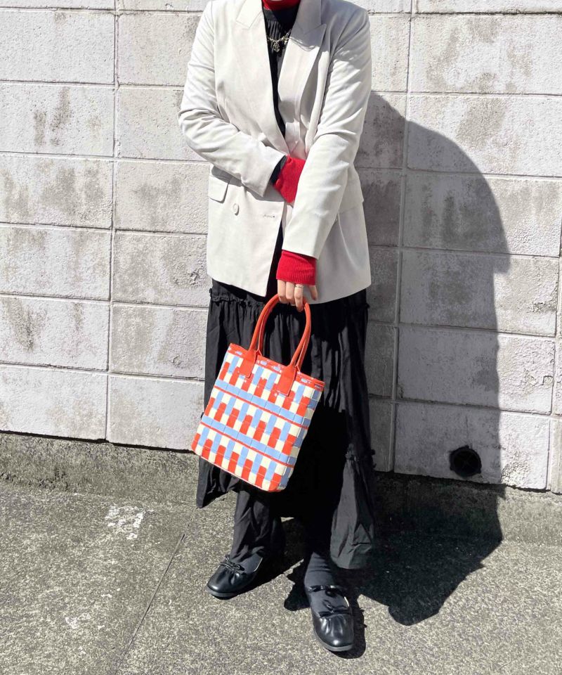 カジュアル過ぎないちょっとシティ派のかごバッグのようなイメージで幅広いコーディネートに〇