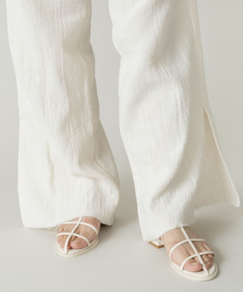 細線のナローストラップが華奢に魅せてくれるサンダル。