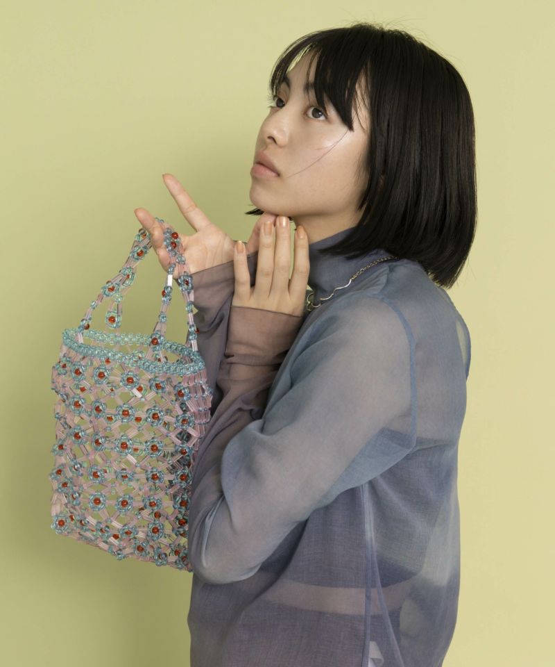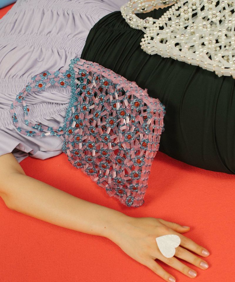 お花を編み地に使用し、ビーズのバランスにこだわり、いくつになっても持ちたくなるバッグに。