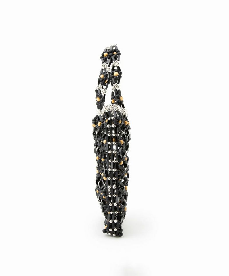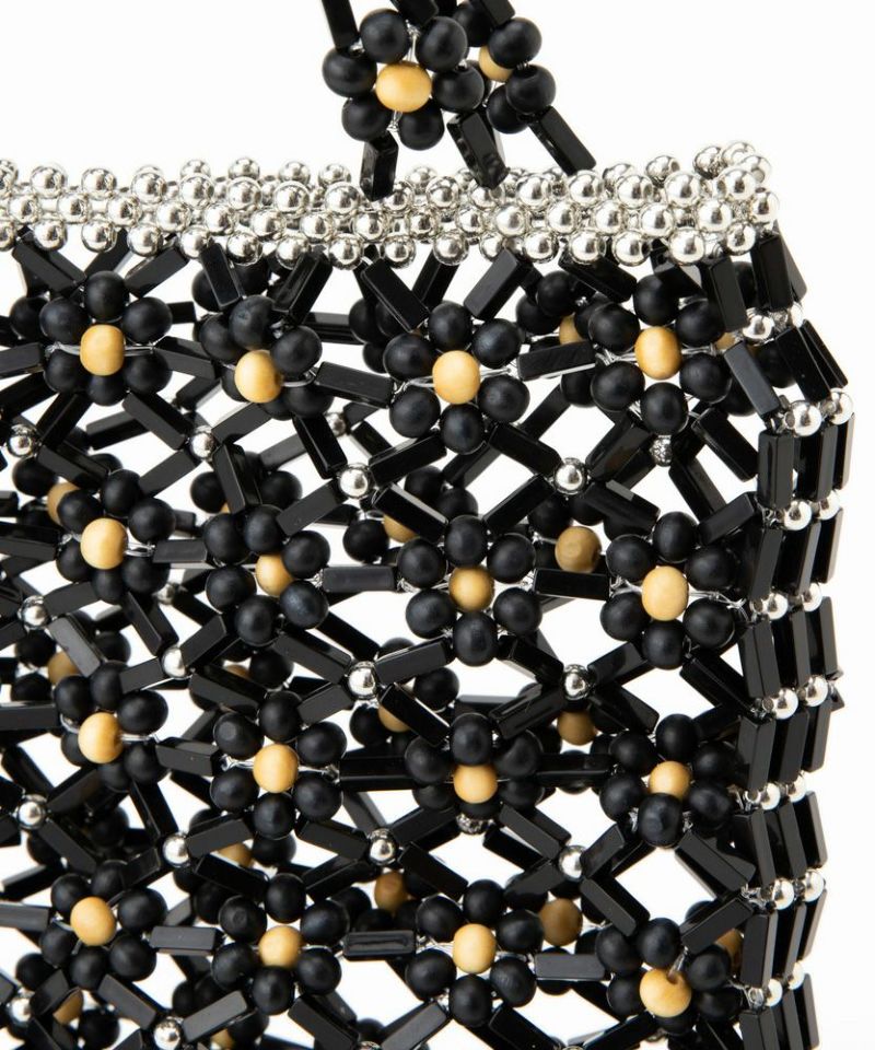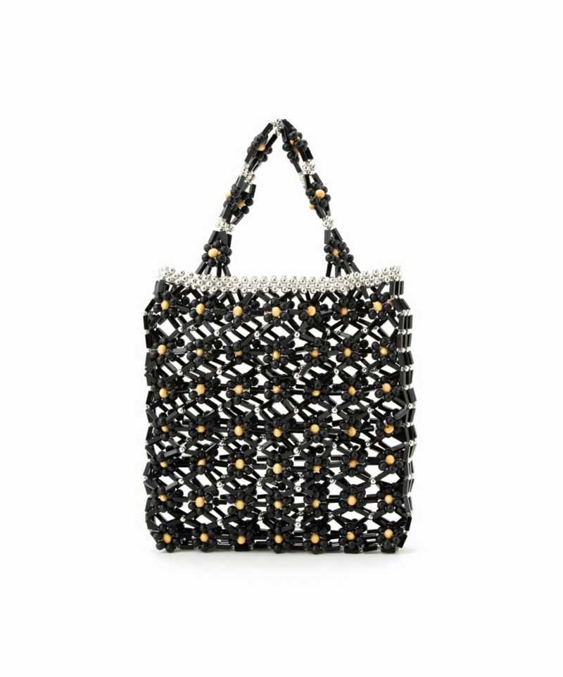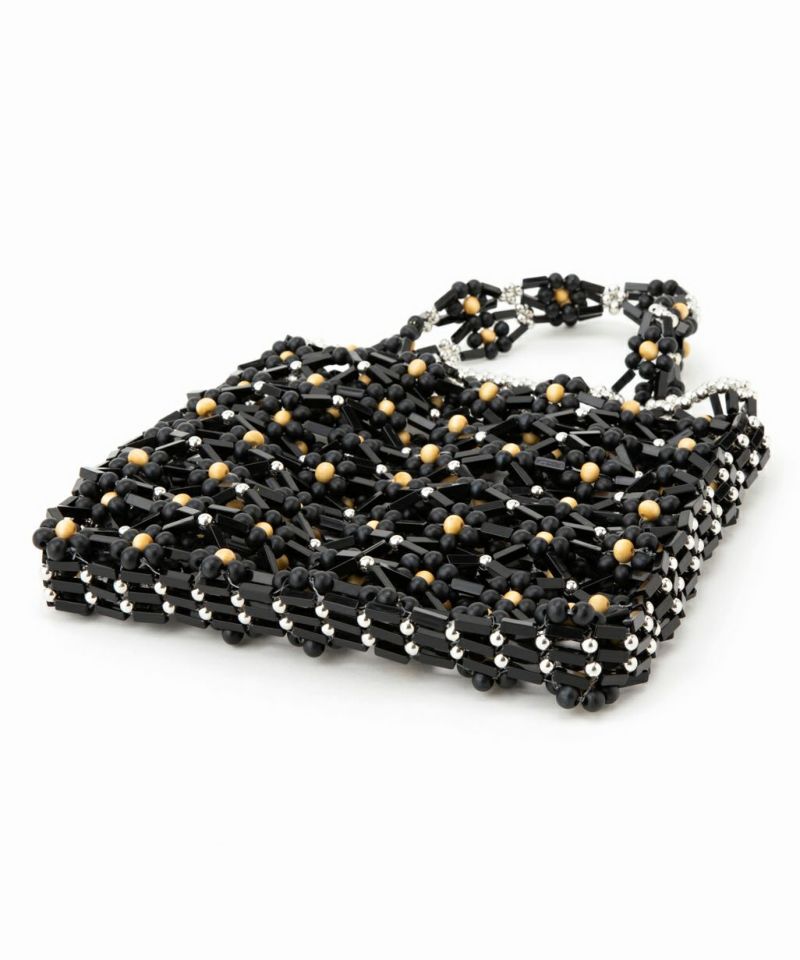ウッドビーズとメタルビーズのミックス感がポイントのトートバッグ。