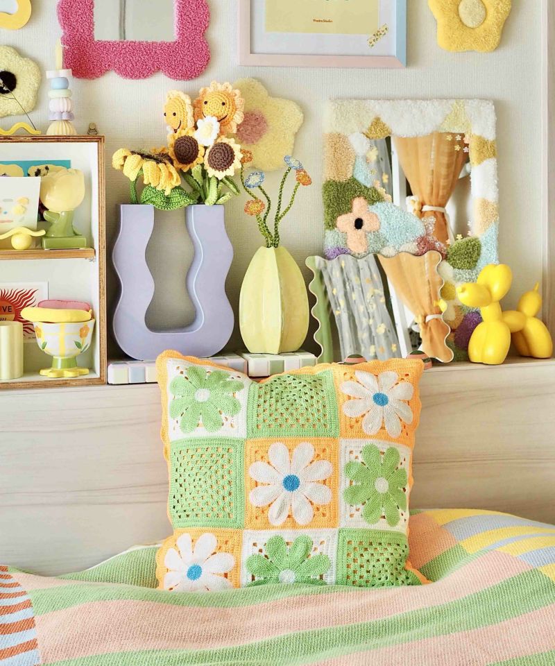トレンドのクロシェ編みのクッションカバー。