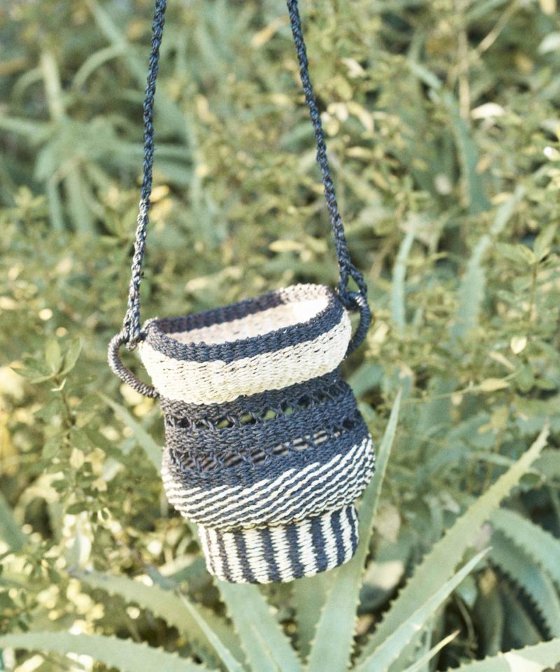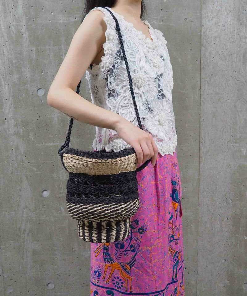 強度のあるアバカ素材で編んだ壺型が特徴的なカゴバッグ。フィリピンでハンドメイドで作ったこだわりの詰まったアイテム。