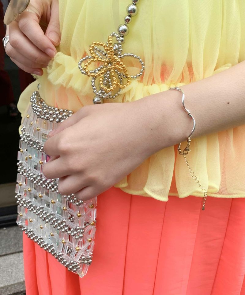細身のパーツですがきれいな発色でコーディネートに色どりを与えてくれます。