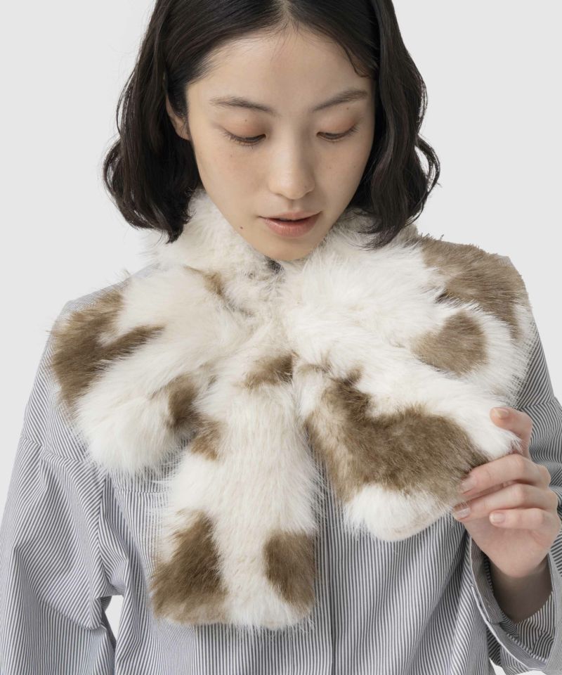アニマル模様がまばらに入っているためポイントになり、ベースのカラーが明るいため顔周りも華やかに見えます。