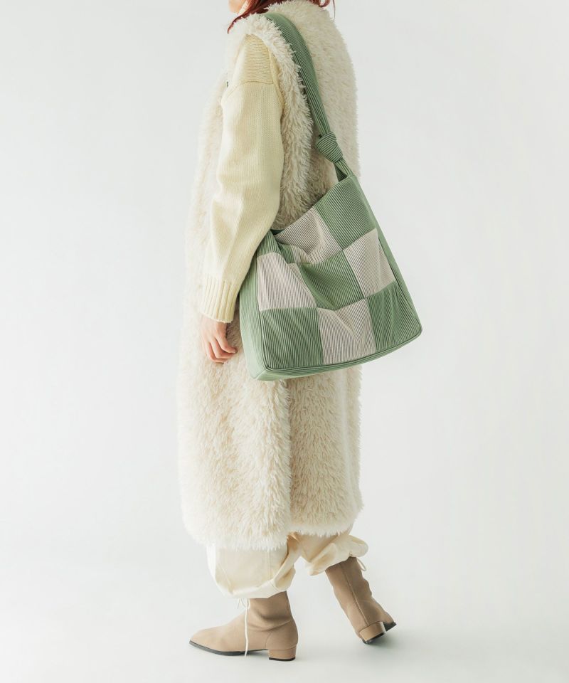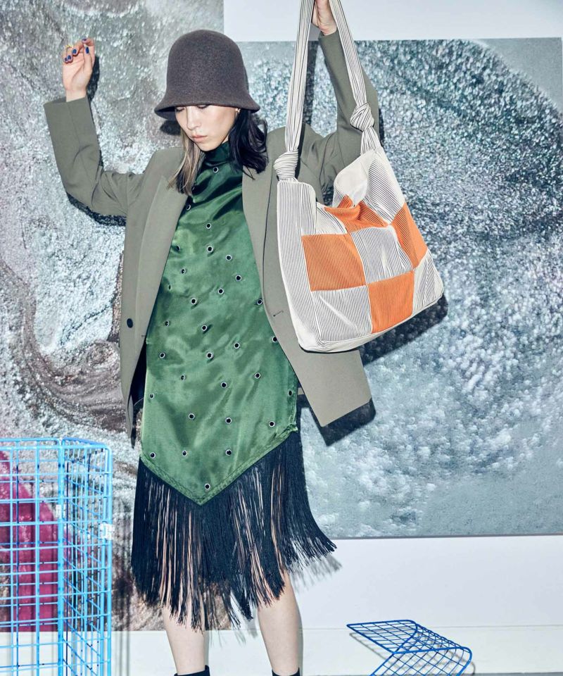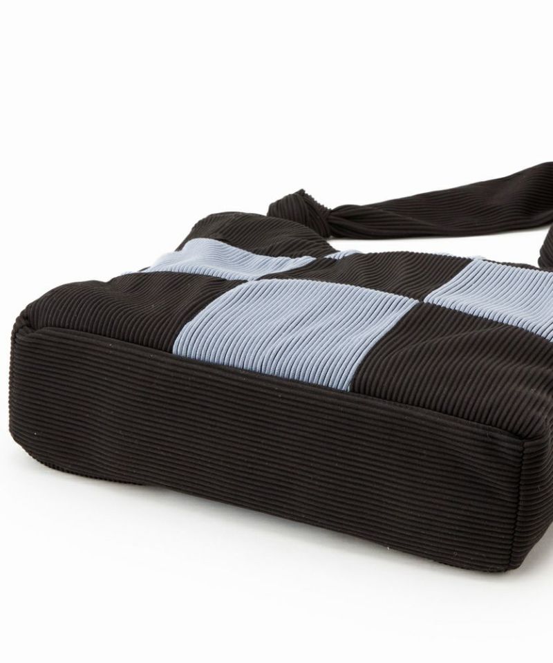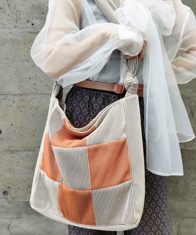 リブ素材をブロッキングに切り替えたバッグ。