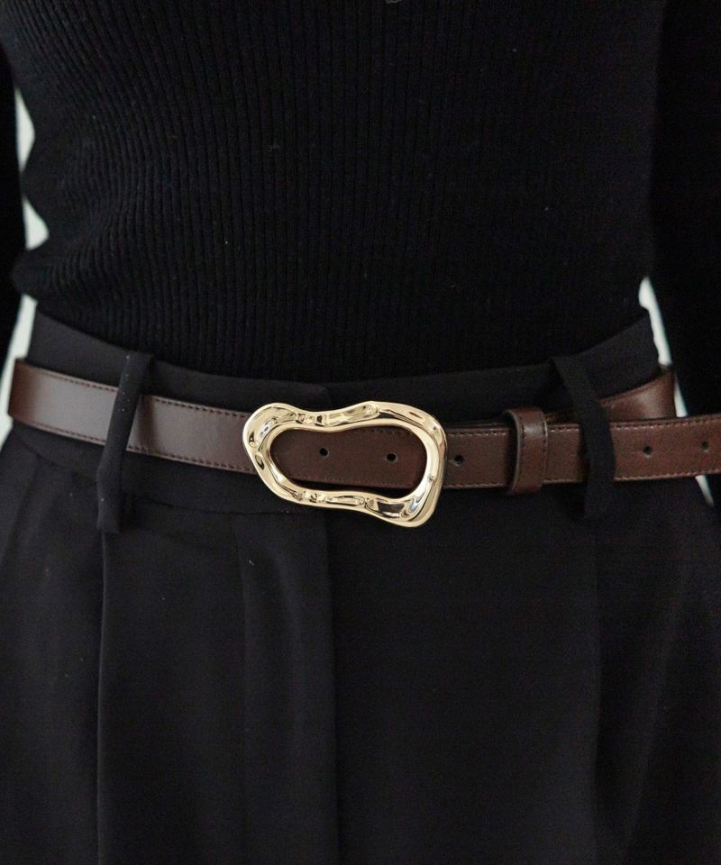 <POIRE -ポワール- >洋梨(POIRE)を模したバックルが目を惹くアイテム。なめらかな表面感の羊調のフェイクレザーが特徴です。ベーシックなカラー展開でデイリーにお使いいただけます。シンプルなコーディネートに合わせてアクセントとしてお使いいただくのもおすすめです。