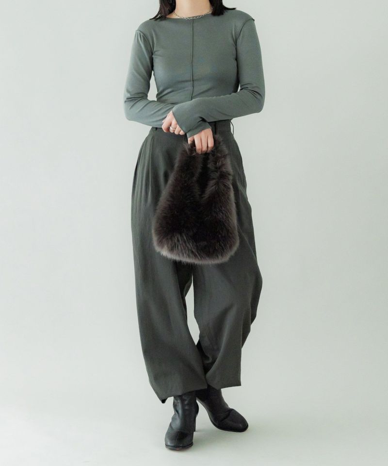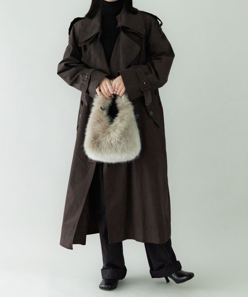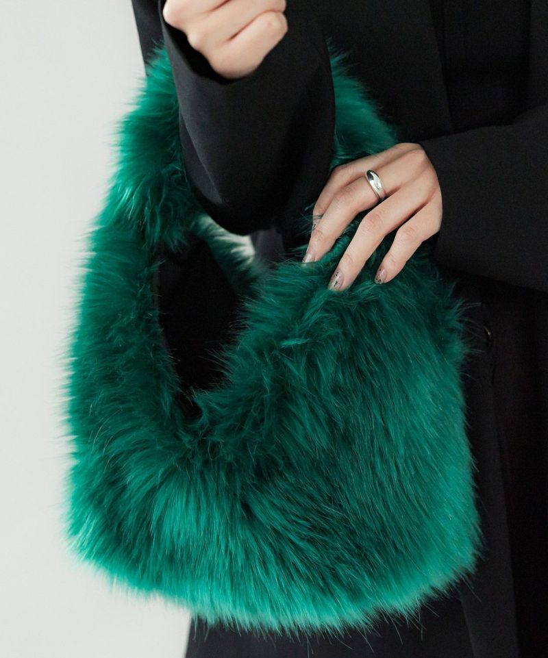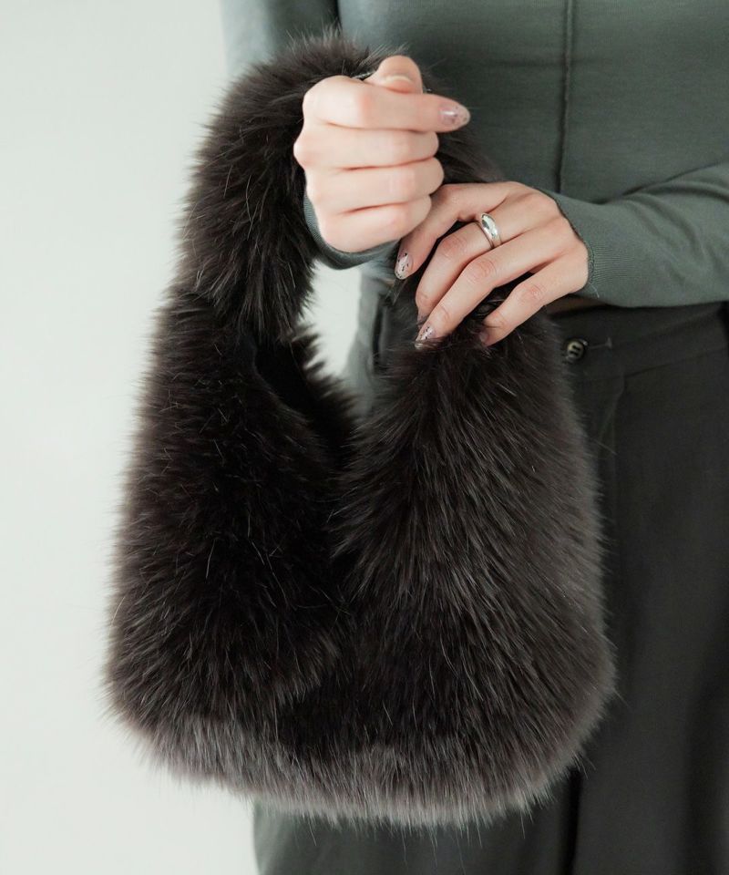 秋冬のムードを高めるエコファーバッグ。長さの異なる8種類の素材をブレンドしたMade in JAPANの生地を使い、リアルファーのような上質な手触りに仕上げました。削ぎ落されたシンプルな仕様で、デニムなどのラフなスタイルに合わせていただくのもおすすめのバッグです