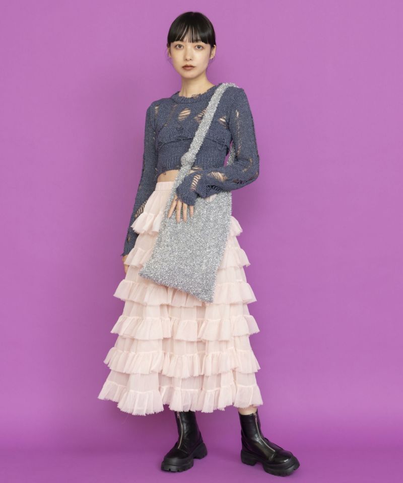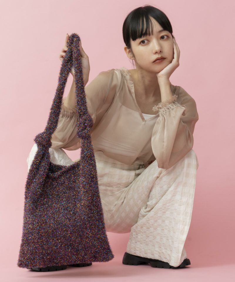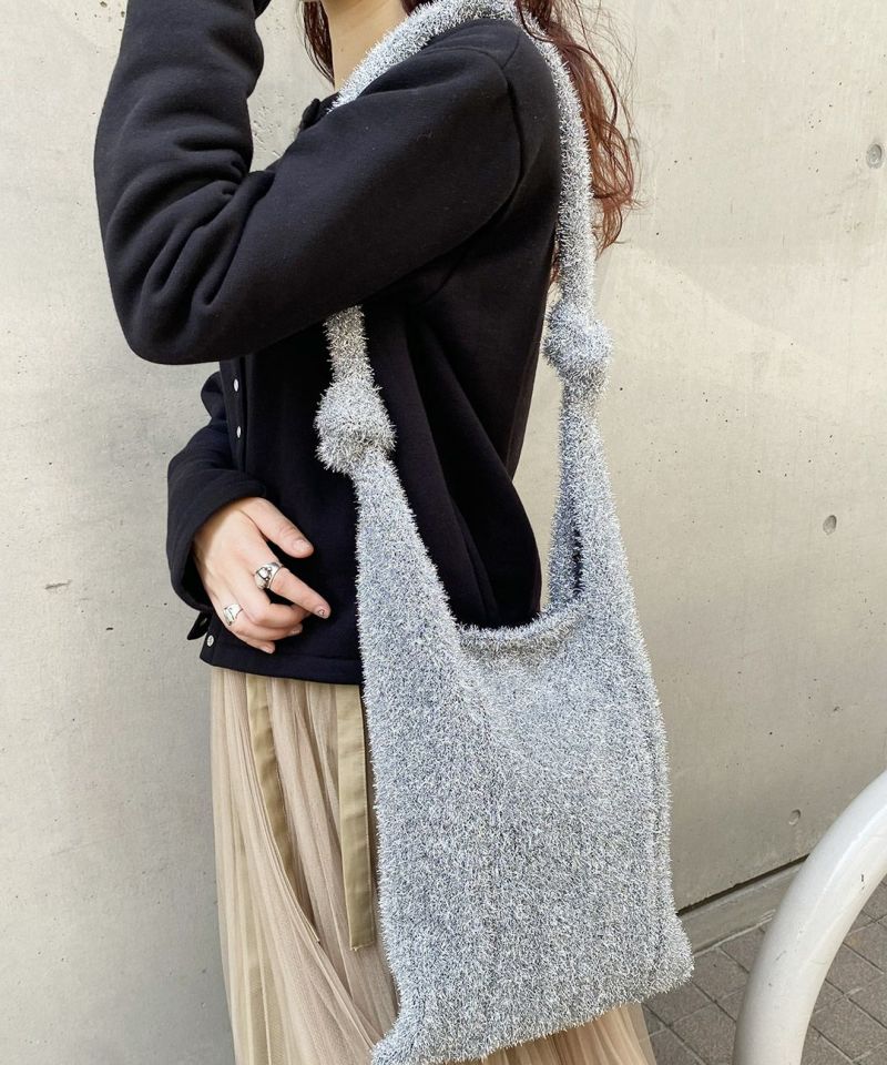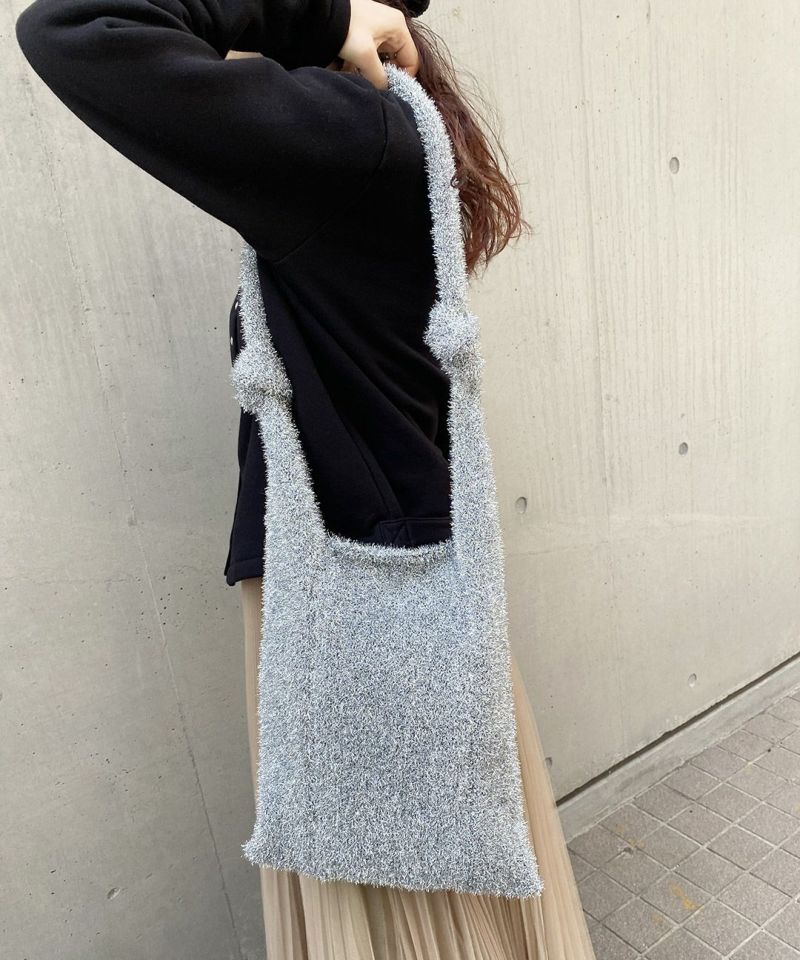 キラキラ素材を使用しているニットトートバッグが登場です。