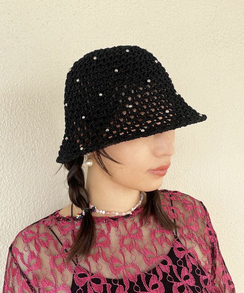 透け感のある編地がシーズンムード漂うサマーハット。 全体にちりばめられたビーズが、アクセサリーライクなアクセントを効かせる可愛いデザインです。 目深に被りやすい丸みのあるシルエットと使いやすいベーシックカラーも◎ キレイめコーデにも、Tシャツ×デニムのようなラフなコーデにも難なくマッチ。カジュアルすぎず合わせやすい上、ポリエステル素材なので、早い時季から取り入れていただけます。