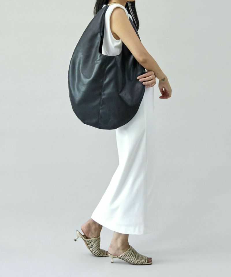 さらっと合わせるだけで様になる、マチのない丸みのあるフォルムが印象的なバッグ。